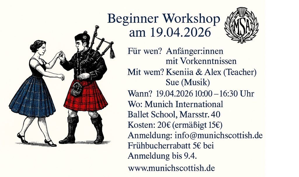 Dank dem Interview von Sue mit der Moderatorin Elise Hoffmann konnte die MSA heute im Radio einem breiten Publikum vorgestellt werden. Im Beitrag „Schottland mitten in München“ erhaltet Ihr einige Hintergrundinfos zum Verein und dem schottischen Tanz bei der MSA: Beitrag auf egoFM vom 11.02.2025.